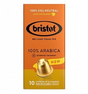 10 קפסולות אלומניום תואם נספרסו Bristot 100% arabica חוזק 6