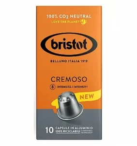 10 קפסולות אלומניום תואם נספרסו Bristot Cremoso חוזק 8